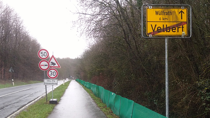 Der Kreis Mettmann stellt daher an den Hotspots der Amphibienwanderung, wo keinen festen Leitanlagen eingebaut sind, temporär kniehohe Amphibienzäune auf, die Frösche, Kröte und Molche vor dem Überfahren retten. In diesem Jahr schützen 3320 Meter Amphibienzäune, die die Untere Naturschutzbehörde von Unternehmern aufbauen lässt, an 16 Standorten die Tiere vor dem Überfahren.