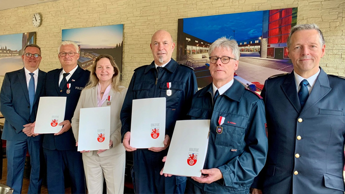 Ratingen. Am heutigen Mittwochvormittag wurde es festlich in den Räumlichkeiten der Feuerwehr Ratingen auf dem Voisweg. Durch den Leiter der Feuerwehr Ratingen, Herrn Brandrat Markus Feier, und den Feuerschutzdezernenten Herrn Harald Filip, konnte das Ehrenabzeichen der Feuerwehr Ratingen in Silber verliehen werden. Ausgezeichnet werden Menschen, die sich in besonderem Maße für die Feuerwehr und über einen langen Zeitraum hinweg einsetzen und verdient gemacht haben.