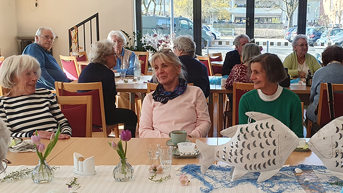Mit viel Liebe zum Detail waren die Tische geschmückt, frische Tulpen sorgten für eine einladende Atmosphäre. „Es ist wirklich schön, in so netter Gesellschaft gemeinsam zu essen. Das schmeckt viel besser, als wenn man alleine zuhause sitzt“, sagt ein rüstiger Herr. „Man merkt, wie wichtig solche Zusammenkünfte sind.“