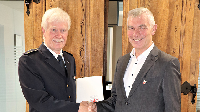 Ratingen. In den wohlverdienten Ruhestand verabschiedete Bürgermeister Klaus Pesch jetzt Brandoberamtsrat Joachim Herbrand. Seit 40 Jahren gehört dieser der Feuerwehr an. In den letzten Jahren seiner beruflichen Laufbahn gehörte er als Abteilungsleiter vorbeugender Brandschutz sowie Mitglied der SE-Führungsgruppe dem Leitungsteam der Ratinger Feuerwehr an. Im Jahr 2015 wurde Joachim Herbrand mit dem Feuerwehr-Ehrenzeichen in Gold ausgezeichnet. Nun freut er sich auf ruhigere Tage in der Ehrenabteilung der Wehr.