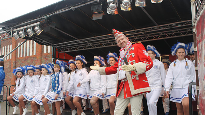 Im Laufe des Tages gaben sich weitere Garden von nah und fern „die Klinke in die Hand“. Unter anderem sorgten die Werstener Music Company, die Ehrengarde der Stadt Düsseldorf sowie die Prinzengarde der Stadt Willich für spektakuläre Auftritte. Mit viel Applaus wurden auch die Darbietungen der KG „De 11 Pille“ Angermund, der Düsseldorfer Bürgerwehr, der KG Torfmöps 68 Schiefbahn und weiterer Vereine belohnt. Natürlich schaute auch das Prinzenpaar der Stadt Ratingen vorbei. Im Laufe des Nachmittags durfte die Prinzengarde auch Heinz Hülshoff begrüßen, der mit seinem Programm die Jecken zum Lachen und Mitsingen animierte.