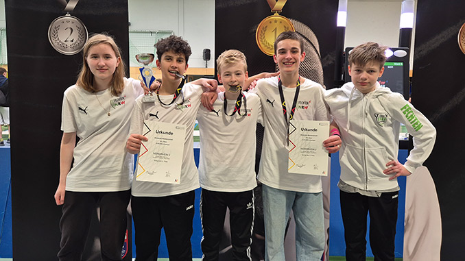 Bei den Deutschen Meisterschaften der U15 am Wochenende 24./25. Juni in Eislingen (Baden-Württemberg) hatten die Fechter des TV Ratingen allen Anlass zur Freude. Mit der Goldmedaille für Niklas Timke sowie den Bronzemedaillen für Hannes Carus und Giovanni La Cognata kämpften sich drei Fechter aus ihren Reihen in die Medaillenränge im Mannschaftswettbewerb. Gemeinsam mit den weiteren Teammitgliedern der ersten Mannschaft des Rheinischen Fechter-Bundes Justin Liu, Jannis Grohmann und Jakob Negri (alle TSV Bayer Dormagen) erfocht sich Timke den Meistertitel. In einem spannenden Finale gewannen sie gegen die erste Mannschaft des Bayerischen Fechterverbands verdient mit 45:35. Zuvor hatten sie dem mit Auswahlmannschaften aller großen deutschen Fechtverbände gespickten Turnier durch zum Teil beeindruckende Leistungen ihren Stempel aufgedrückt. Carus und La Cognata gewannen mit der zweiten Mannschaft des Rheinischen Fechter-Bundes zusammen mit Delin Su und Floyd Plützer (beide TSV Bayer Dormagen) die Bronzemedaille. Gegen die favorisierte erste Mannschaft des Württembergischen Fechterbunds wuchs die rheinische Equipe über sich hinaus und schlug diese im kleinen Finale um Platz 3 überraschend deutlich mit 45:25.