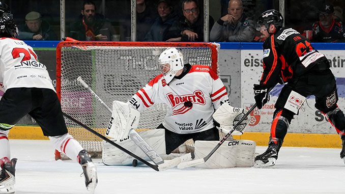 Ratingen. 46 gezählte Schüsse auf das Tor der Gäste, mehrmals noch den Pfosten getroffen, oftmals war im letzten Moment ein Schläger der Rockets-Spieler dazwischen und was durchkam, hielt Torwart Knecht sehr gut. Auf der Gegenseite immer wieder gefährliche Angriffe der Rockets durch ihre pfeilschnellen Stürmer. So ergab sich eine kurzweilige, abwechslungsreiche Partie vor fast 650 Zuschauern, die zudem beidseitig unter fragwürdigen Schiedsrichterentscheidungen stand.