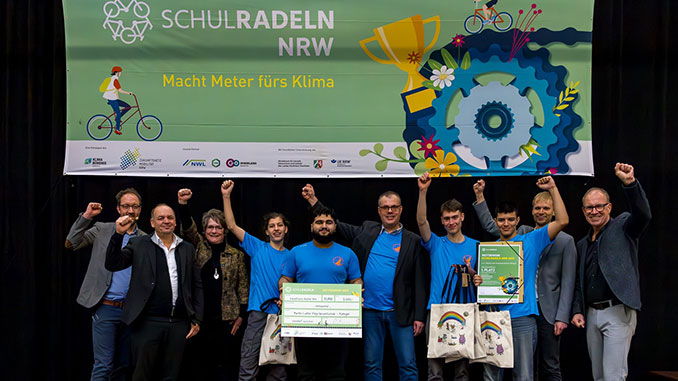Für die bestplatzierten Teams gab es Preise und Urkunden, die Viktor Haase, Staatssekretär im NRW-Ministerium für Umwelt, Naturschutz und Verkehr in den Abenteuerhallen Köln-Kalk in Anwesenheit der Ratinger Mobilitätsdezernentin Petra Cremer überreichte: „Die große Beteiligung zeigt, wie selbstverständlich der tägliche Weg mit dem Fahrrad für viele ist. Das bringt Bewegung in den Alltag, entlastet das Klima und macht Schulwege sicherer. Das Schulradeln setzt dafür wichtige Impulse.“ Die Unfallkasse NRW als Mitpräsentator des diesjährigen Schulradelns ergänzte die Preise des Landes um weitere Geschenke für die Preisträger.