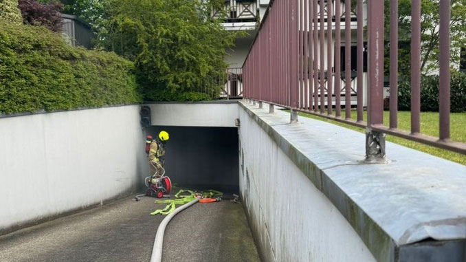 Anwohner hatten zu diesem Zeitpunkt eine deutliche Rauchentwicklung gemeldet. Beim Eintreffen bestätigte sich die Lage: Die Tiefgarage war stark verraucht, auffällig war der bläuliche Rauch, der von den Abgasen eines Oldtimers herrührte, die sich in der geschlossenen Garage angesammelt hatten. Aufgrund der erhöhten Kohlenmonoxidkonzentration bestand eine akute Gefährdung für mögliche Personen in der Garage. Ein Trupp rückte umgehend unter Atemschutz in die Garage vor, um sicherzustellen, dass keine Personen gefährdet waren. Gleichzeitig wurden das angrenzende Gebäude sowie die Umgebung sorgfältig überprüft. Zur schnellen Entrauchung setzten die Einsatzkräfte Hochleistungslüfter ein und überwachten den Bereich mit Messgeräten. Verletzt wurde bei dem Einsatz glücklicherweise niemand. Nach etwa einer Stunde konnten Feuerwehr und Rettungsdienst den Einsatz beenden. Die Polizei hat die Ermittlungen zur Ursache und zum Verursacher aufgenommen. Im Einsatz waren 16 Kräfte der Berufsfeuerwehr, des Löschzugs Hösel/Eggerscheidt sowie der Rettungsdienst der Städte Ratingen und Heiligenhaus. Die Polizei des Kreises Mettmann war ebenfalls vor Ort.