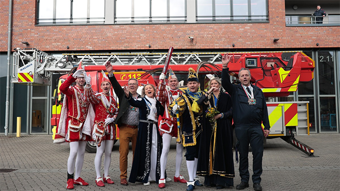 Die Freude ebbte nicht ab, denn auch Prinz Tim I. und Prinz Patrick I. aus Velbert kamen samt ihrem Hofstaat vorbei. Schließlich gehört der Feuerwehrchef der KG Boum Haul Pool 1934 e.V. an, und das muss gefeiert werden! Aber das war noch nicht alles: Das Prinzenpaar aus Angermund, Prinz Christoph I. und Venezia Diana I. mit ihrer Atjutantur, gesellte sich ebenfalls dazu. „Allein für die Fahrt mit der Drehleiter lohnt es sich, in Ratingen Prinz zu werden!“, hat der Prinz einmal gesagt.