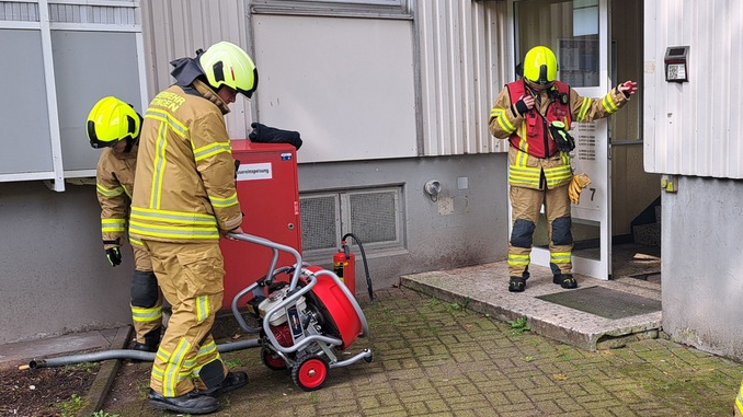 Als Brandherd konnte ein ausgebrannter Topf im Flur des 1. Obergeschosses lokalisiert werden. Ein aufmerksamer und engagierter Nachbar hatte das Feuer bereits mit einem Pulverlöscher gelöscht und somit Schlimmeres verhindert. Durch den Einsatztrupp der Feuerwehr wurde der Topf ins Freie verbracht, die betroffene Küchenzeile kontrolliert und der Treppenraum maschinell, mit einem Lüfter, entraucht.