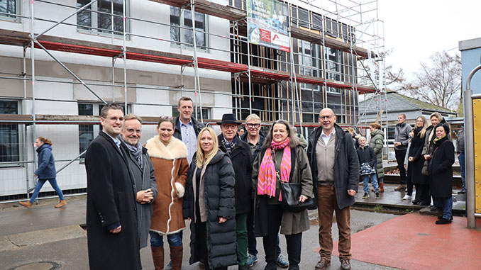 Ratingen. Der Ergänzungsbau an der Wilhelm-Busch-Schule in Hösel schreitet mit Riesenschritten voran. Im Juli dieses Jahres begannen die Arbeiten, jetzt, am 8. Dezember, konnte schon Richtfest gefeiert werden. Bereits zum Beginn des Schuljahres 2026/2027 sollen die Schülerinnen und Schüler ihr neues Gebäude in Beschlag nehmen.