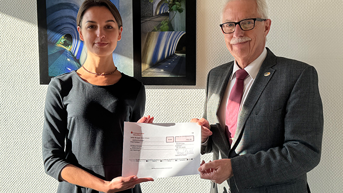 Kreis Mettmann. 700 Euro spenden der Kreistag und Landrat Thomas Hendele in diesem Jahr an den Verein Dobrosvit. Die Fraktionsvorsitzenden und Gruppensprecher, die bei der Kreistagssitzung im Dezember im Rahmen der Verabschiedung des Kreishaushaltes ihre Reden überzogen hatten, spendeten für den guten Zweck. Den Scheck überreichte der Landrat an die Vorstandsvorsitzende des Vereins, Inna Schlich.