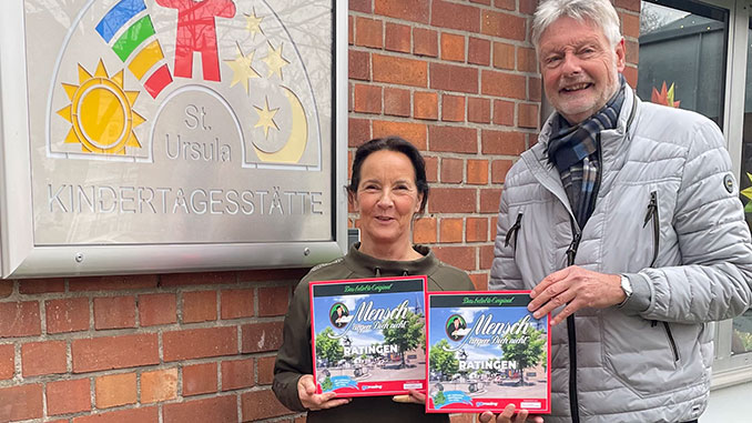 Der Heimatverein Ratinger Jonges sorgte schon im Advent für eine besondere Überraschung: Der evangelische und katholische Kindergarten in direkter Nachbarschaft des Dicken Turms erhielten jeweils Exemplare der anlässlich der 750-Jahr-Feier herausgegebenen Ratingen-Edition des Spiele-Klassikers „Mensch ärgere dich nicht.“ In dieser limitierten Edition zieren das Spielfeld und den Kartondeckel bekannte Bildmotive aus Ratingen (Marktplatz mit Löwenbrunnen und Trinsenturm), auch die Spielfelder sind mit Ratinger Motiven gestaltet. Vizebaas Guido Multhaupt übergab die Spiele an die Kindergartenleiterinnen. „So können mit dem Spiel bereits Kinder mit den Schönheiten unserer Heimatstadt vertraut gemacht werden“, freute sich Multhaupt.