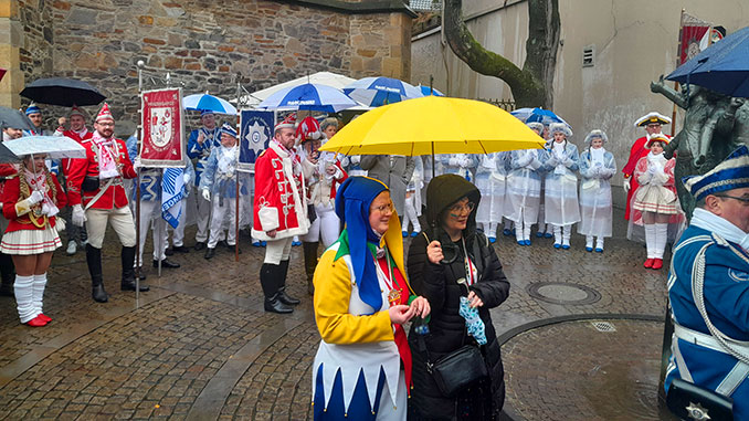 Ratingen. Grau am Himmel, aber bunt auf dem Marktplatz: Trotz regnerischen Wetters war der Altweiber-Donnerstag in Ratingen auch in diesem Jahr ein voller Erfolg. Zahlreiche Jecken strömten in die Innenstadt und verwandelten den Marktplatz in eine fröhliche Karnevalshochburg.