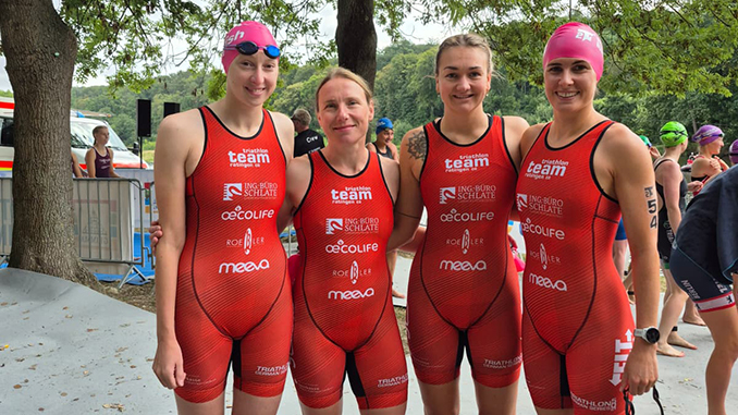 In der pittoresken Altstadt der sächsischen Stadt Grimma schafften die Bundesliga-Damen des Triathlon Team Ratingen 08 beim Eins Muldental Triathlon den ersehnten Top Ten-Platz. Als Neunte der 2. Triathlon Bundesliga Nord strahlten Kathrin Harnischmacher, Florentine Anaç-Exner, Joana Wollf und Michaela Melsa mit dem siegreichen Tri Team Hamburg um die Wette.