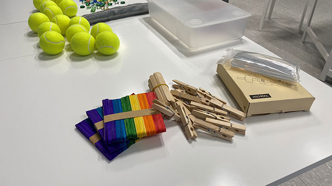 In der Veranstaltung verdeutlichte Referentin Maja Hoffmann den Zusammenhang zwischen Handgeschicklichkeit, Feinmotorik sowie frühkindlicher Entwicklung. Sie stellte konkrete, spielerische Förderaufgaben vor. Den Auftakt bildete eine Mitmach-Phase, in der die Teilnehmerinnen eigenständig Materialien anfertigten, die sie direkt in ihrer Kita einsetzen können. Besonders beliebt waren die Tennisball-Gesichter, deren offenes Maul mit verschiedenem Kleinmaterial gefüttert wird, wodurch die auf vielseitige Weise die Fingerfertigkeit trainiert.