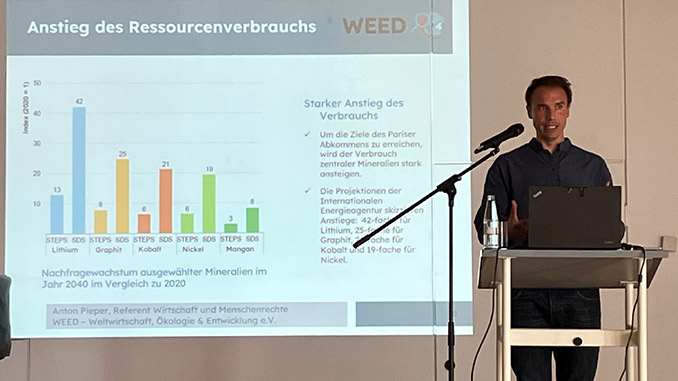 Anton Pieper von Weltwirtschaft, Ökologie & Entwicklung – WEED e.V. erläutert den Anstieg der Rohstoffbedarfe.